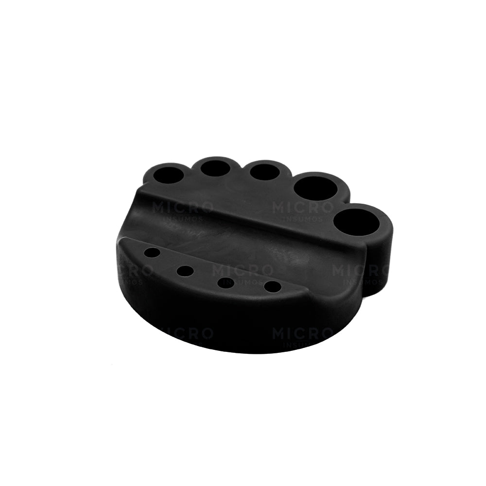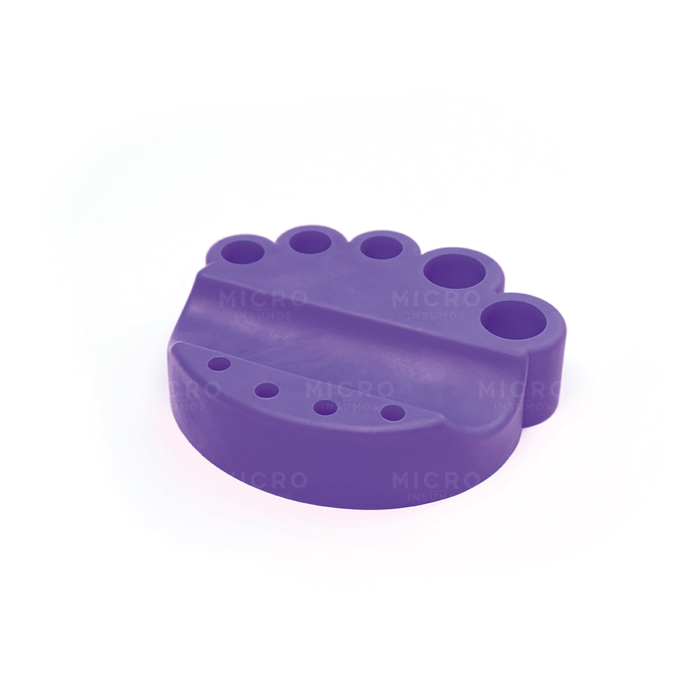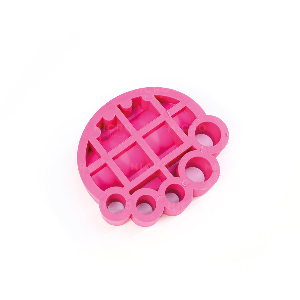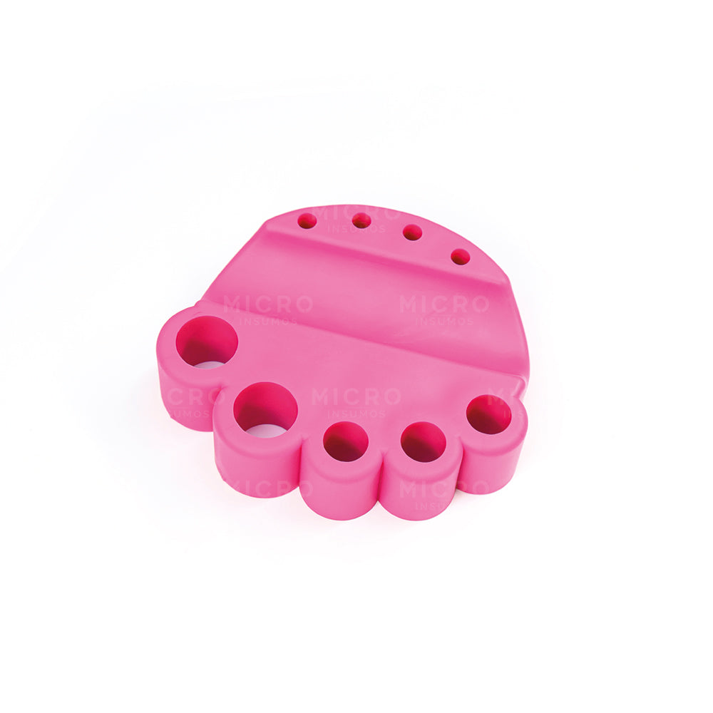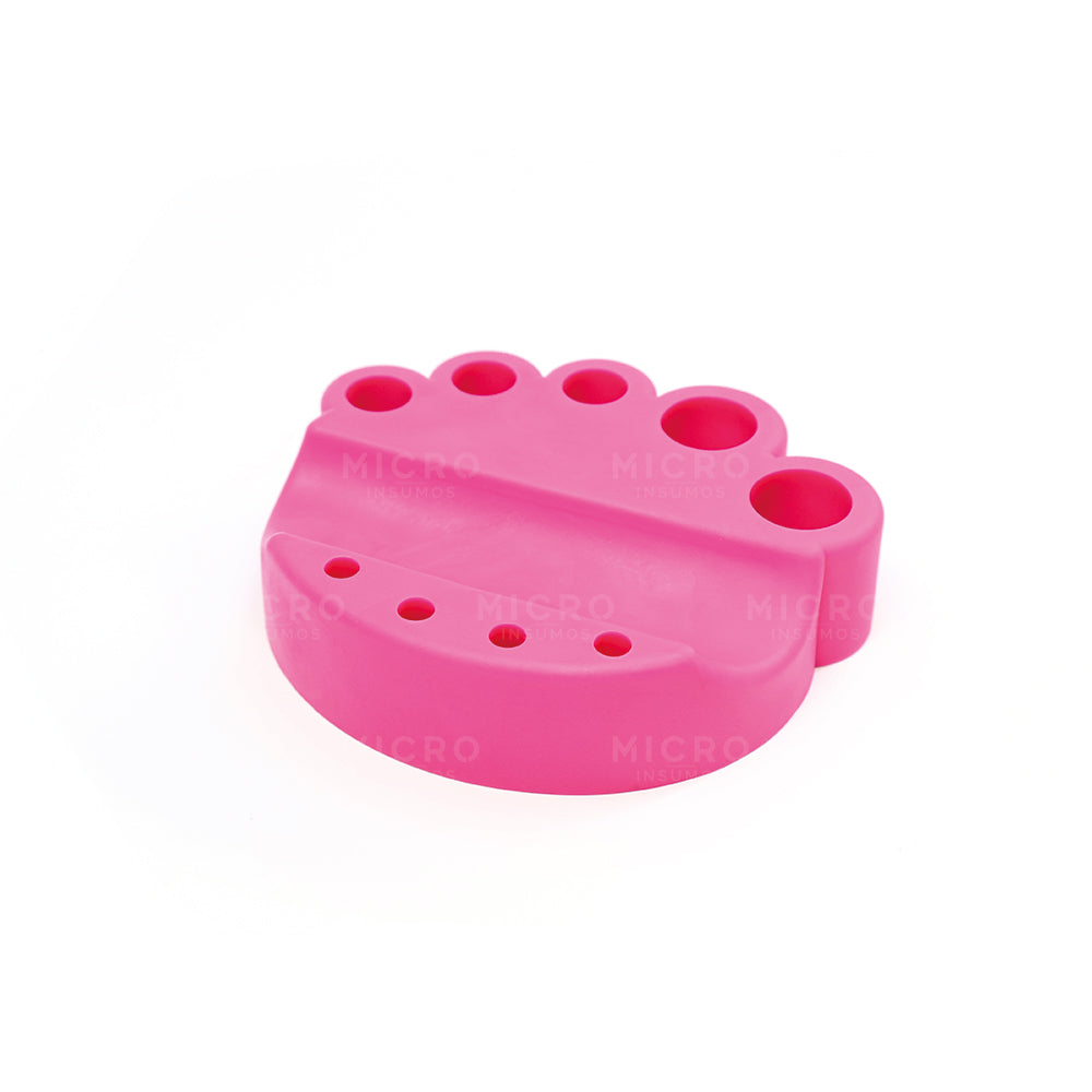 Base de silicona en forma de flor, funciona como soporte de pluma o dermógrafo, tiene compartimientos porta cups y porta aplicadores. Soporte antideslizante, higiénico y practico.