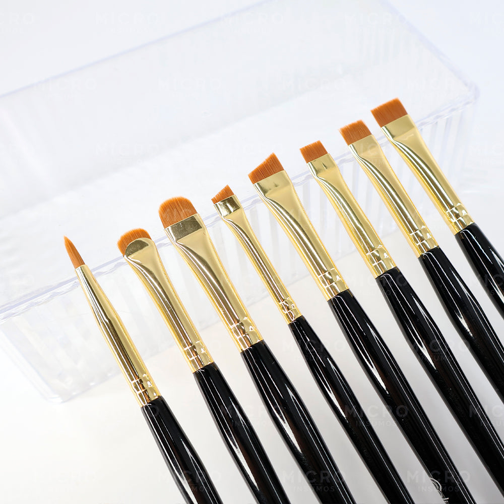 Pinceles diseñados para una perfecta precisión e impecable aplicación. Ya sea que estés haciendo diseño de cejas, aplicación de henna, diseño de labios, aplicación de pasos de Lifting, sérums, tintes o corrector, estos pinceles dan resultados de nivel profesional. Aplicación suave y uniforme que distribuye el producto a la perfección. Sostenibilidad en cada pasada.